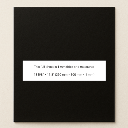 Thickness is 1 mm. Sheet measures 13 5/8″ x 11.8″.